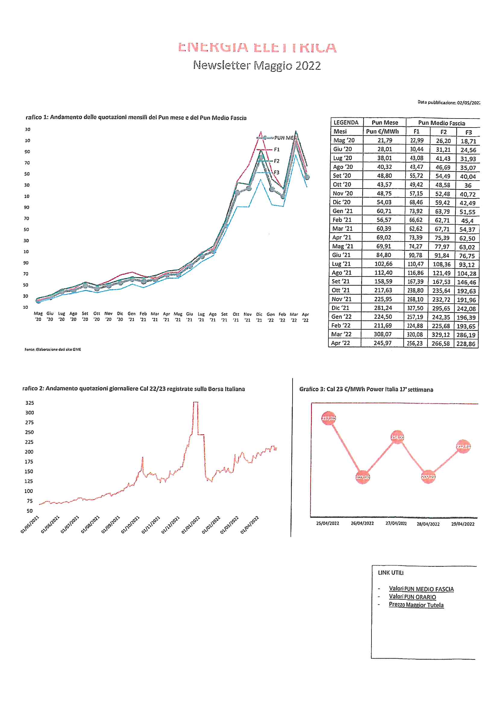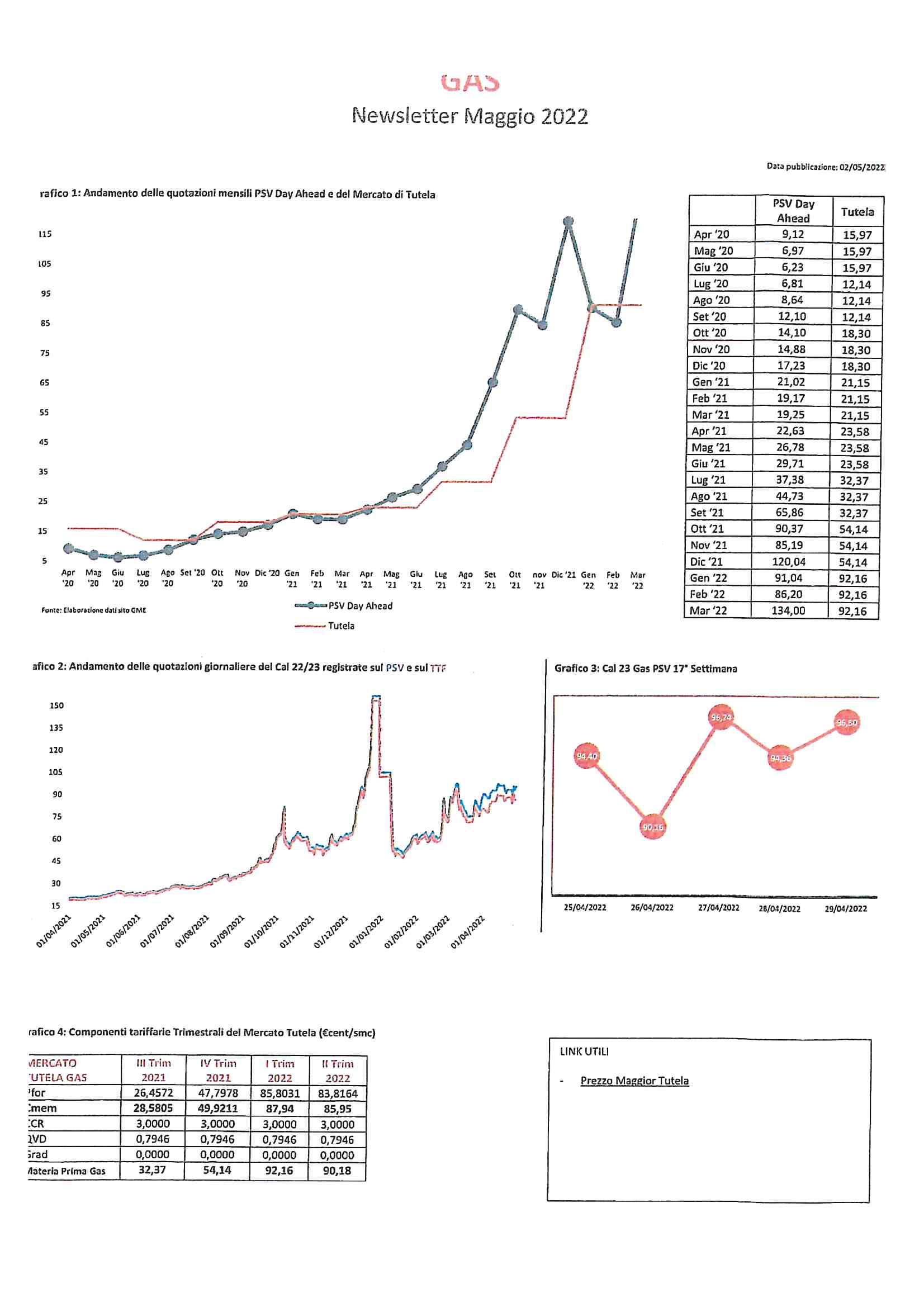 • Andamento dei prezzi di gas ed energia elettrica Andamento dei prezzi di gas ed energia elettrica